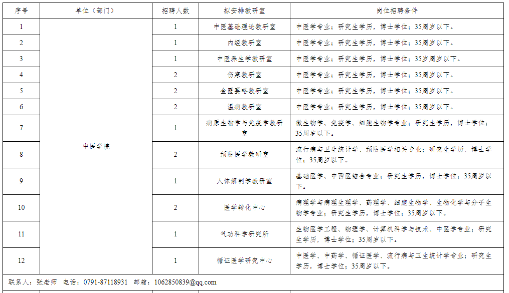 一、二、三類人才及博士人才請(qǐng)將上述材料以電子郵件附件的形式發(fā)至應(yīng)聘部門聯(lián)系人郵箱。(文件名格式為:畢業(yè)院校+姓名+專業(yè)+應(yīng)聘部門+崗位,如“江西中醫(yī)藥大學(xué)+張三+中醫(yī)學(xué)專業(yè)+中醫(yī)學(xué)院+中醫(yī)臨床基礎(chǔ)教研室”)