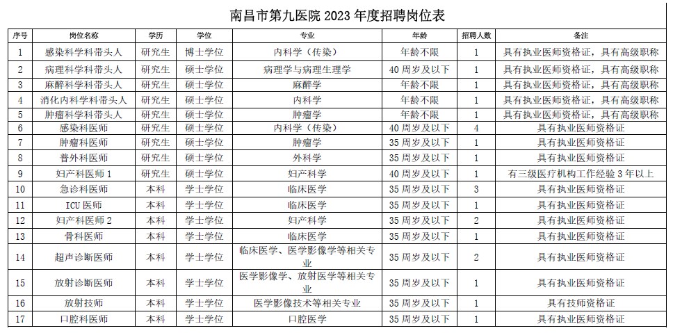 南昌市第九醫(yī)院2023年招聘工作人員26人