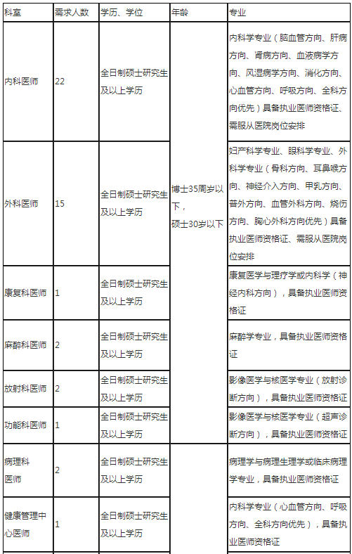 2、全日制碩士研究生:按程序通過(guò)招聘考試錄用后,納入事業(yè)單位編制管理,執(zhí)行國(guó)家事業(yè)單位工資福利待遇。緊缺專業(yè)(產(chǎn)科醫(yī)師、放射診斷醫(yī)師、超聲診斷醫(yī)師)一次性給予安家費(fèi)20萬(wàn)元,連續(xù)三年發(fā)放每月500元生活津貼。