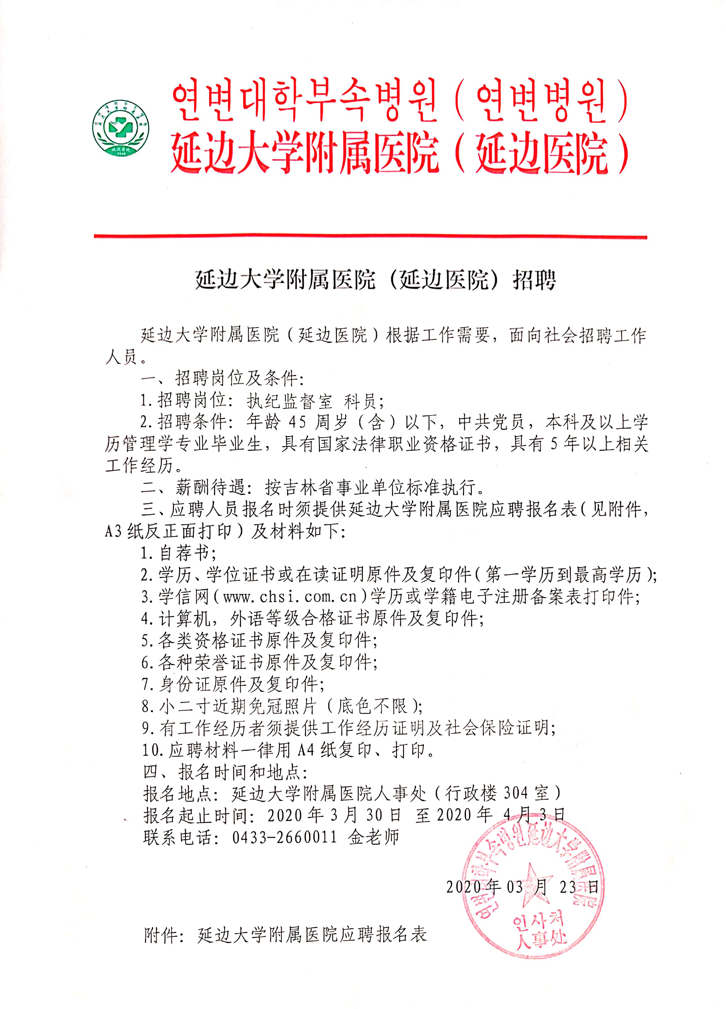 延邊大學(xué)附屬醫(yī)院(延邊醫(yī)院)招聘公告