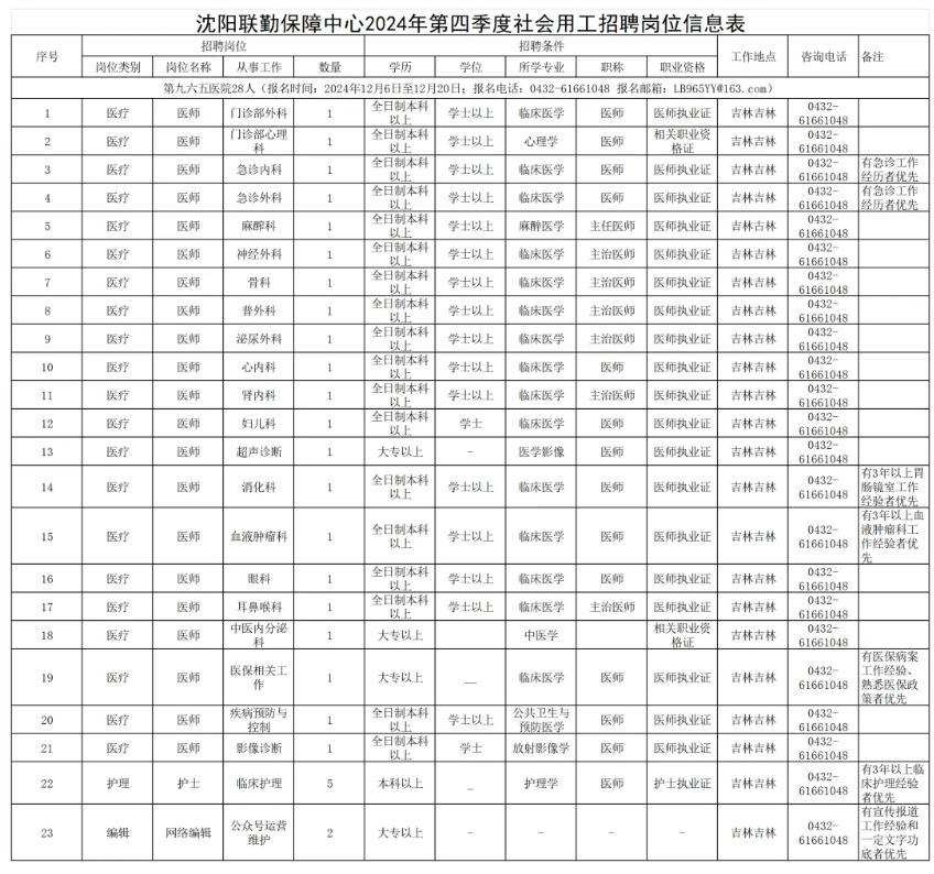 聯(lián)勤保障部隊第九六五醫(yī)院2024年第四季度社會用工招聘公告