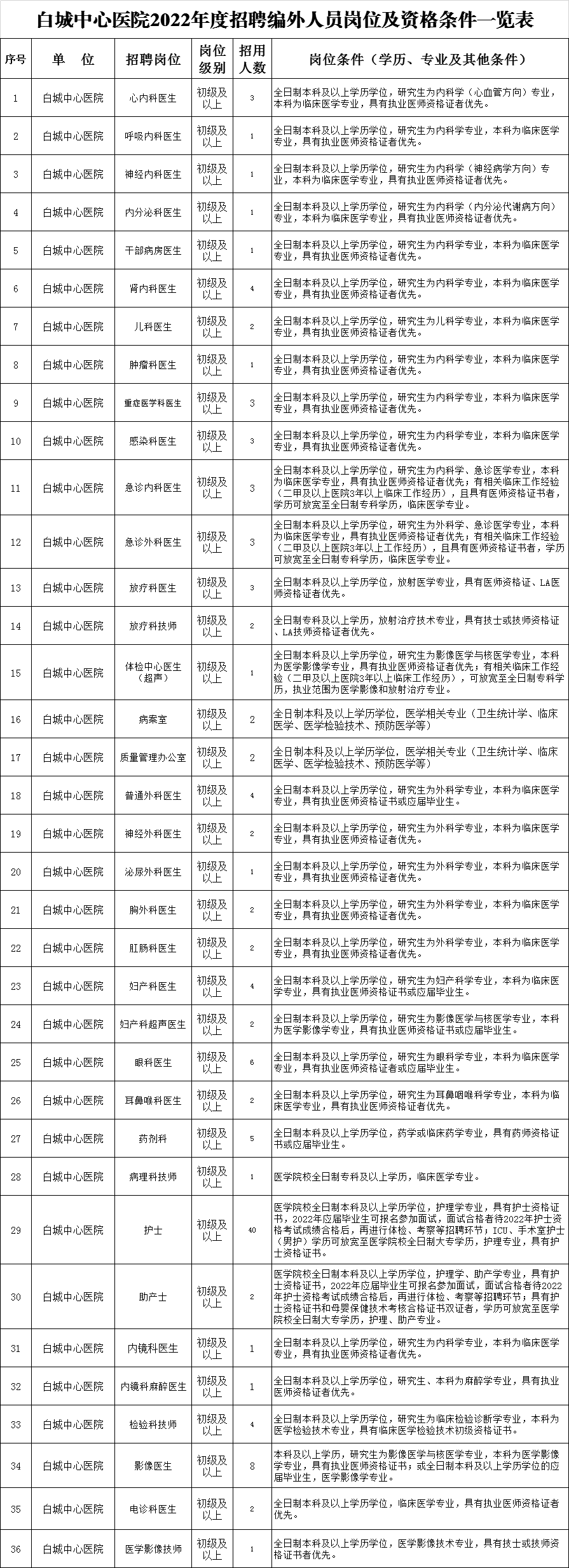 吉林省白城中心醫(yī)院2022年招聘工作人員126人