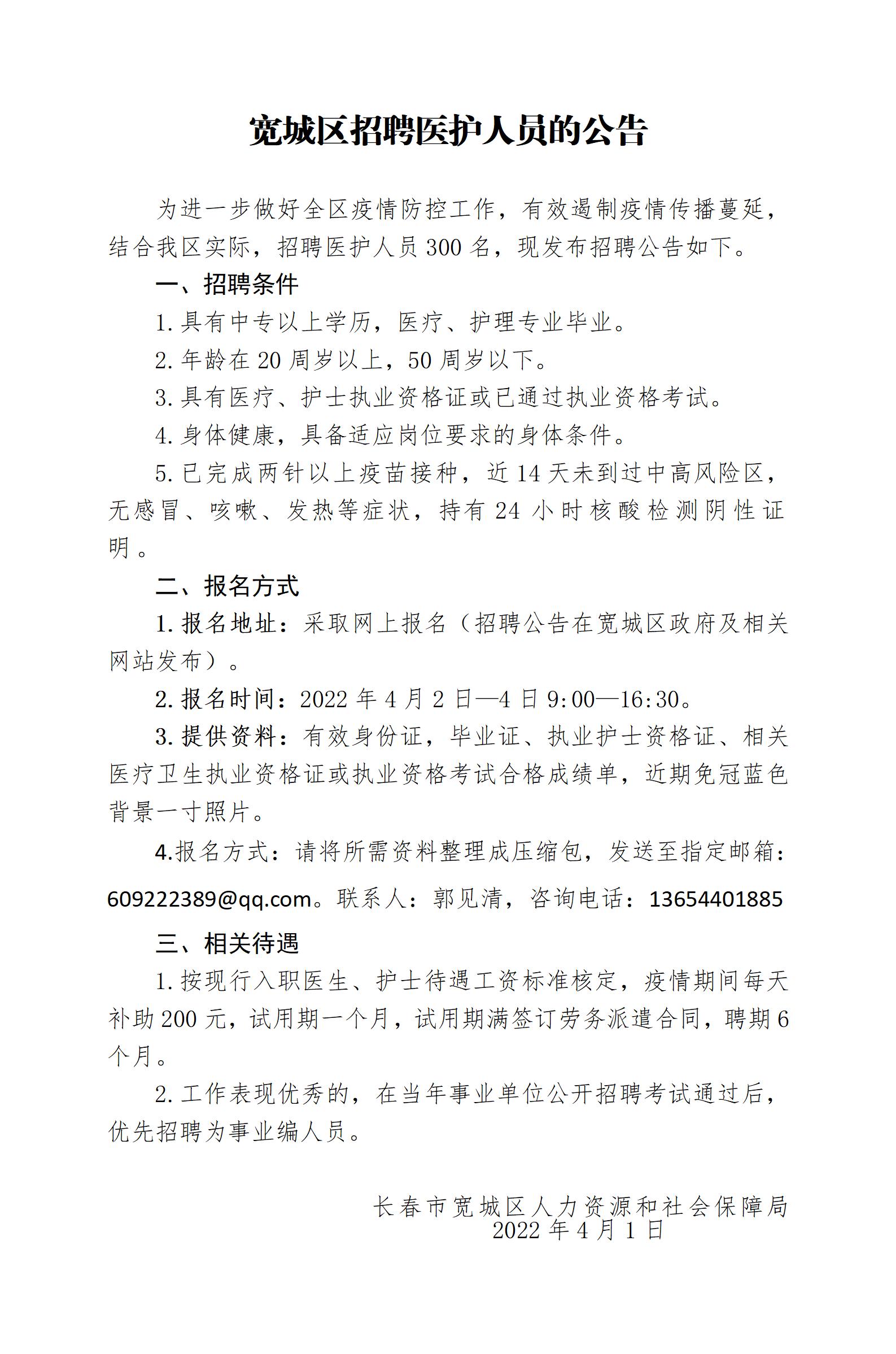 長春市寬城區(qū)2022年招聘醫(yī)護(hù)人員300名