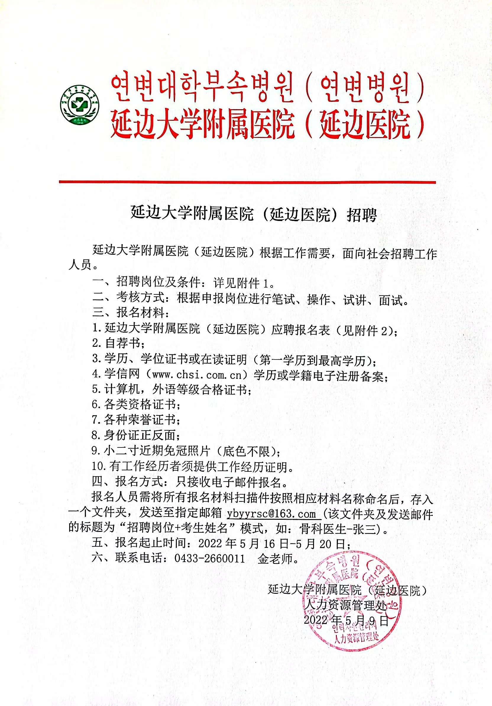 附件1:2022年延邊大學(xué)附屬醫(yī)院(延邊醫(yī)院)招聘崗位及其資格條件一覽表