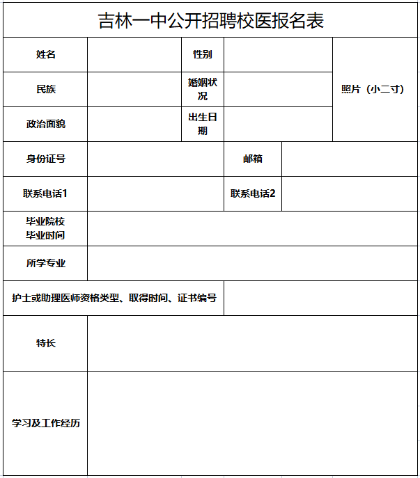 吉林市第一中學2022年6月招聘校醫(yī)2人