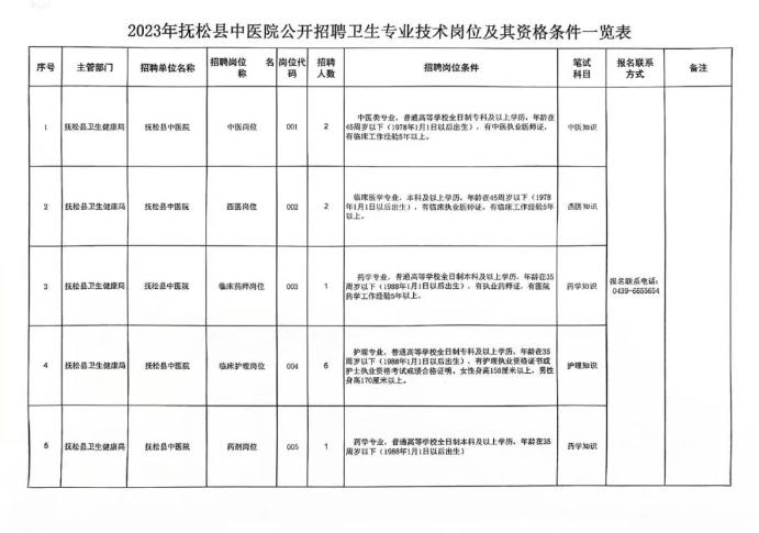 2.報(bào)名地點(diǎn):撫松縣中醫(yī)院人秘科(行政樓二樓)