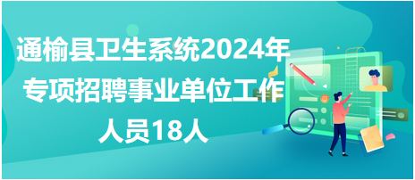 根據(jù)《事業(yè)單位人事管理條例》、《關(guān)于認(rèn)真做好2024年度全省事業(yè)單位公開招聘工作的通知》(吉人社函〔2024〕15號)文件精神,經(jīng)通榆縣人民政府同意,衛(wèi)生系統(tǒng)內(nèi)部分事業(yè)單位擬面向社會專項招聘事業(yè)單位工作人員18名,現(xiàn)將有關(guān)事宜公告如下:
