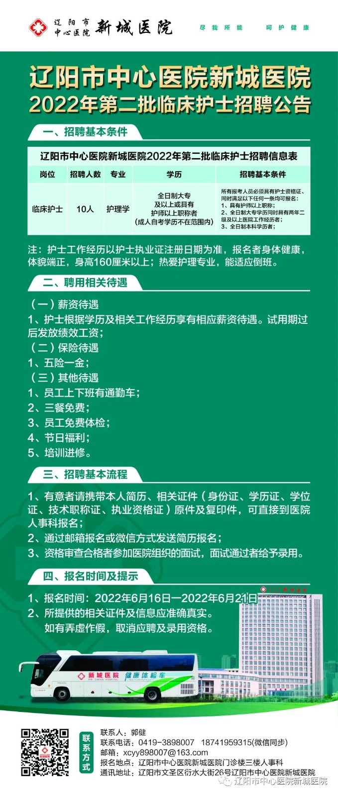 遼陽(yáng)市中心醫(yī)院新城醫(yī)院2022年第二批招聘臨床護(hù)士10人
