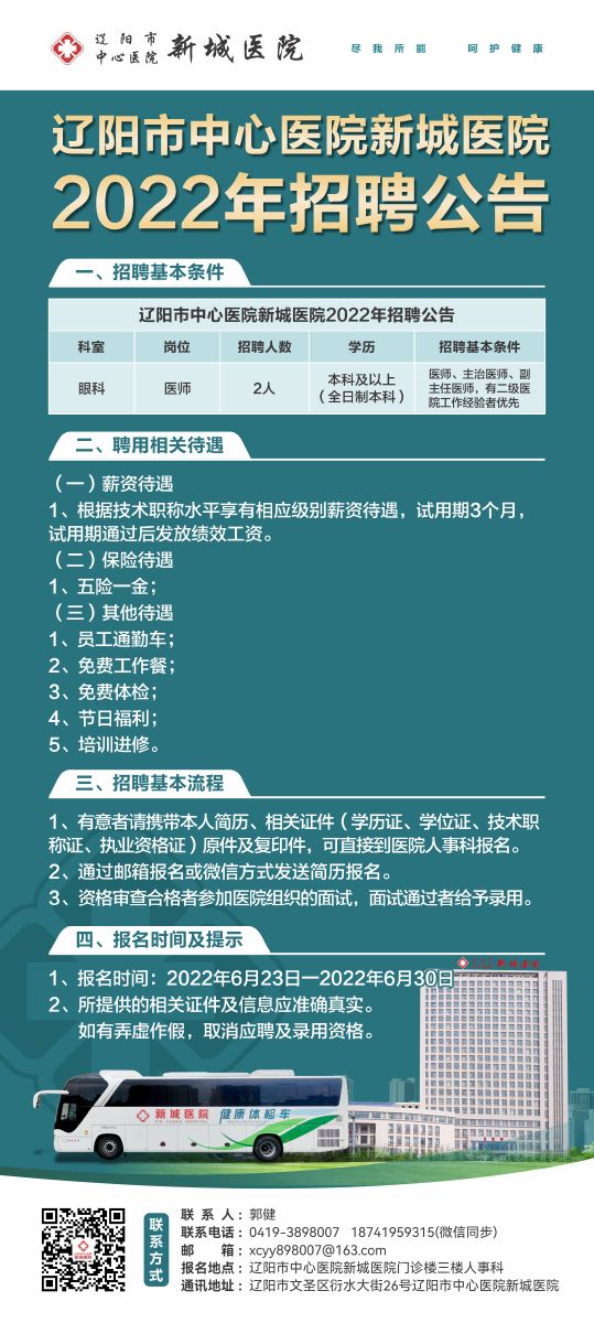 遼寧省遼陽(yáng)市中心醫(yī)院新城醫(yī)院2022年招聘眼科醫(yī)師2人