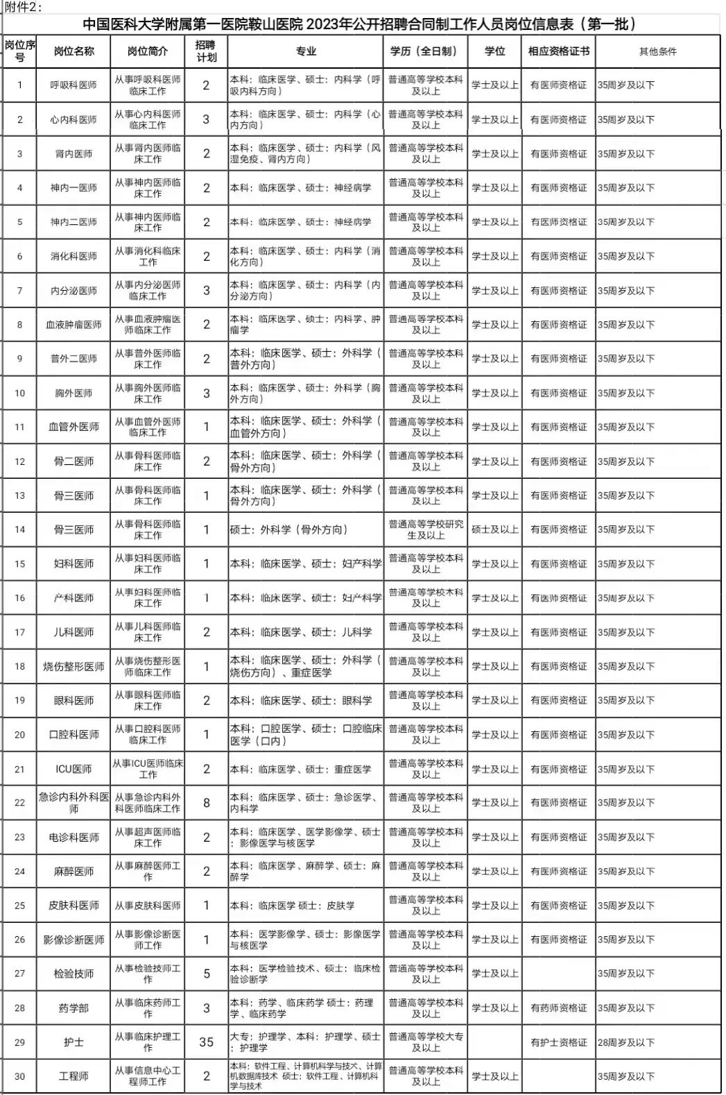 (六)崗位所需要的其他條件,詳見《中國醫(yī)科大學(xué)附屬第一醫(yī)院鞍山醫(yī)院2023年公開招聘工作人員崗位信息表》;