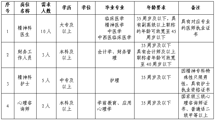 2.精神科醫(yī)生、財務崗位人員以及心理咨詢師崗位的考試形式均為面試。