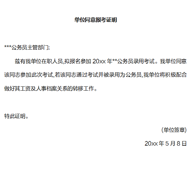 單位同意報考證明