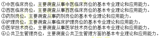 主要測(cè)查應(yīng)試人員運(yùn)用崗位專業(yè)知識(shí)進(jìn)行分析、判斷和解決實(shí)際問題的能力,以及實(shí)際操作技能、溝通技能、臨床思維技能和應(yīng)具備的個(gè)人素養(yǎng)。