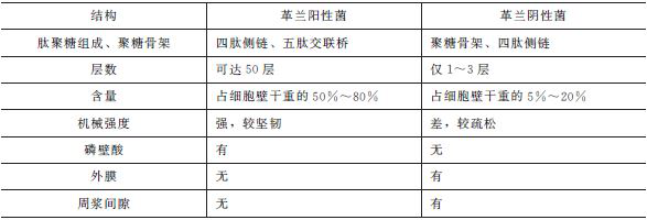 2.革蘭氏陽(yáng)性菌與陰性菌結(jié)構(gòu)特點(diǎn)