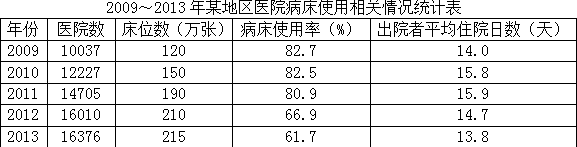 A.2009~2013年,該地區(qū)的病床使用率逐年下降