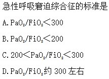 【答案解析】臨床上PaO2/FiO2<300診斷為急性肺損傷,PaO2/FiO2<200診斷為急性呼吸窘迫綜合征。