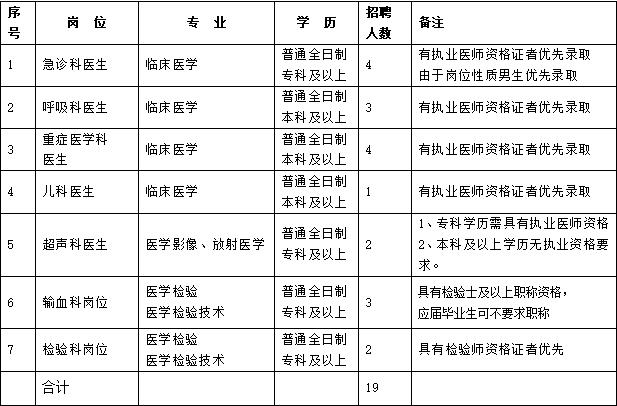 招聘崗位表: