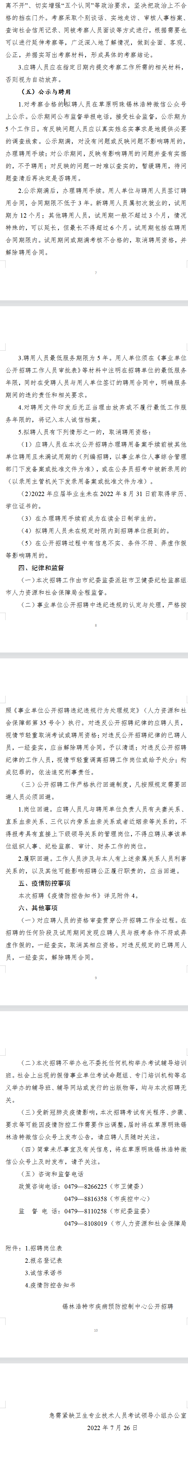 很多即將步入醫(yī)療崗位的朋友們都非常關(guān)注所在地區(qū)醫(yī)療崗位的招聘公告信息,醫(yī)學(xué)教育網(wǎng)醫(yī)療衛(wèi)生招聘欄目為了更好的服務(wù)正在找工作的醫(yī)療相關(guān)專業(yè)人員,每天為大家整理搜集新鮮的各地醫(yī)療衛(wèi)生系統(tǒng)/醫(yī)院等招聘公告通知和信息,歡迎大家查看!以下是公告通知:內(nèi)蒙古錫林浩特市疾病預(yù)防控制中心招聘急需緊缺衛(wèi)生專業(yè)技術(shù)人員5名,內(nèi)容如下: