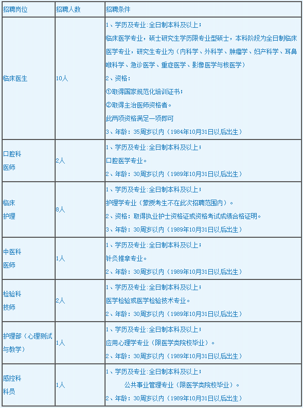 (2)報名臨床醫(yī)生崗位,符合招聘條件者直接進入面試,不進行筆試,面試人數可不按3:1比例進行,即通過資格初審者全部進入面試。