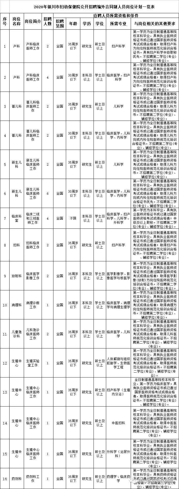 2020年寧夏銀川市婦幼保健院招聘編外合同制人員崗位表