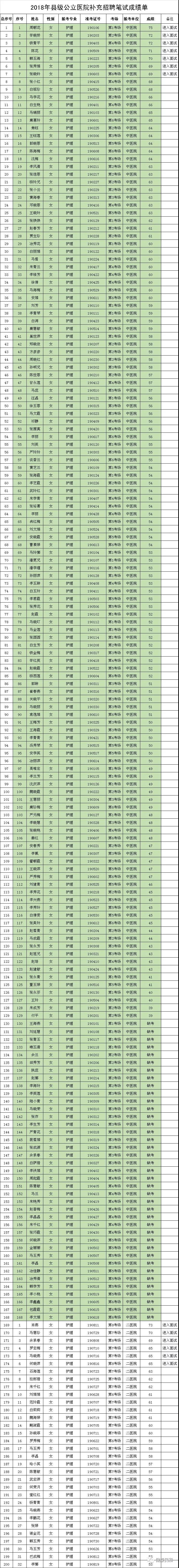 民和縣2018年度縣級(jí)公立醫(yī)院補(bǔ)充招聘筆試成績(jī)表(一)