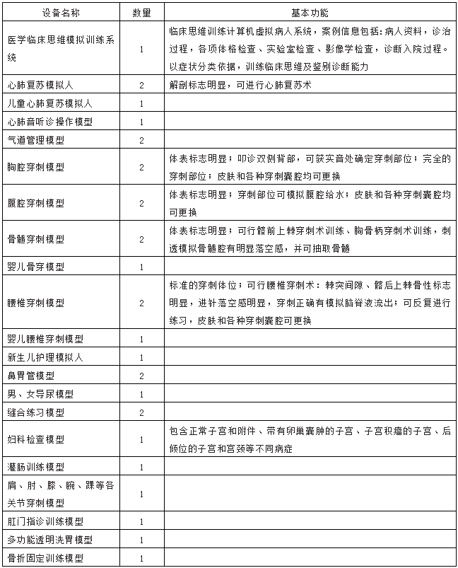 (3)有臨床技能模擬訓(xùn)練中心,具備可滿足教學(xué)、實(shí)踐操作等使用的臨床技能訓(xùn)練模擬設(shè)備,見表1。
