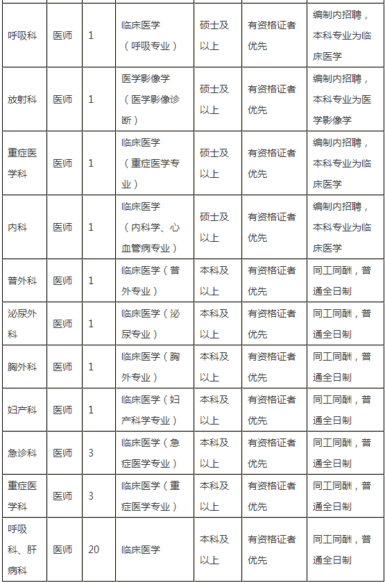 1.根據(jù)青海省事業(yè)單位公開招聘工作人員相關(guān)政策,參加編制外招聘考試,待考試通過后正式聘用;其中如泌尿、胸外、婦產(chǎn)、急診、重癥醫(yī)學(xué)等專業(yè)的本科生可參照博碩研究生進行考核聘用,考核合格后可直接簽訂就業(yè)意向協(xié)議書;
