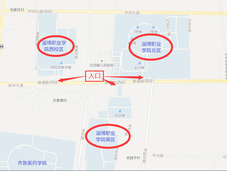 2020年淄博市衛(wèi)生健康系統(tǒng)事業(yè)單位公開(kāi)招聘考試將在淄博職業(yè)學(xué)院南、北、西三個(gè)校區(qū)進(jìn)行,請(qǐng)各相關(guān)考生提前查看準(zhǔn)考證上的考試地點(diǎn),以免走錯(cuò)影響考試。淄博職業(yè)學(xué)院南、北、西校區(qū)示意圖: