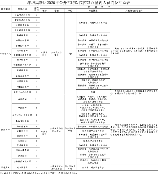 山東濰坊高新區(qū)人民醫(yī)院招聘控制總量內(nèi)人員64名啦