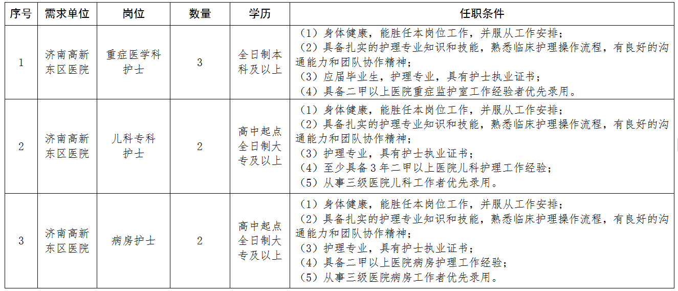 - · 濟(jì)南高新東區(qū)醫(yī)院公開招聘勞務(wù)派遣制護(hù)士7名