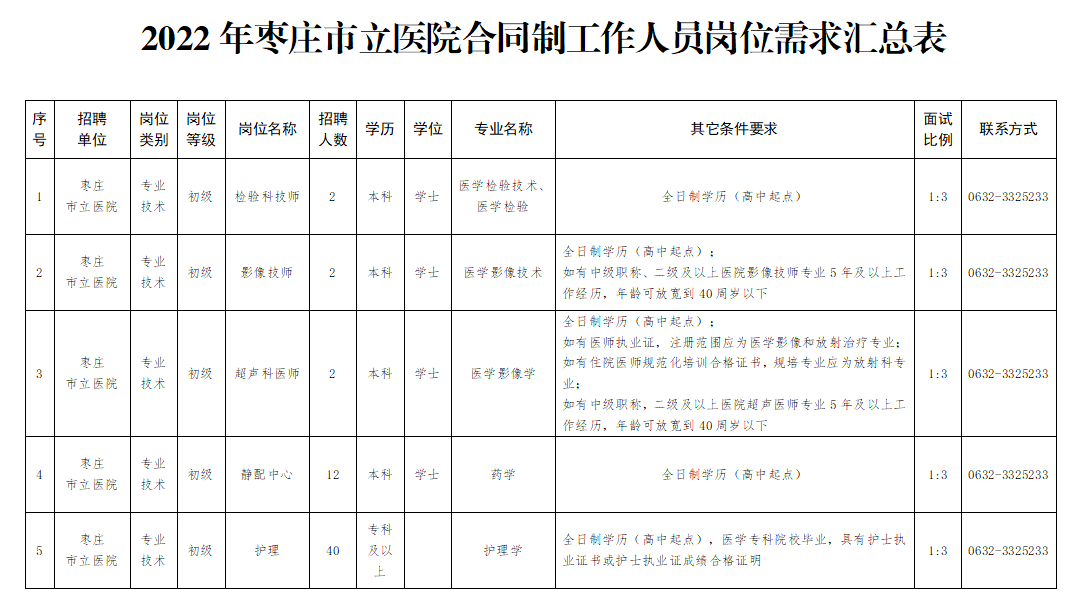 附件:1、2022年棗莊市立醫(yī)院合同制工作人員崗位需求匯總表