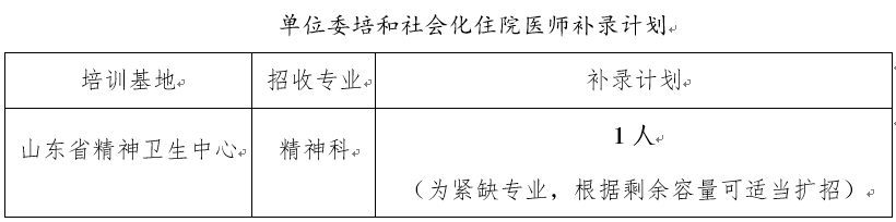 山東省精神衛(wèi)生中心2022年住培醫(yī)師補錄1人