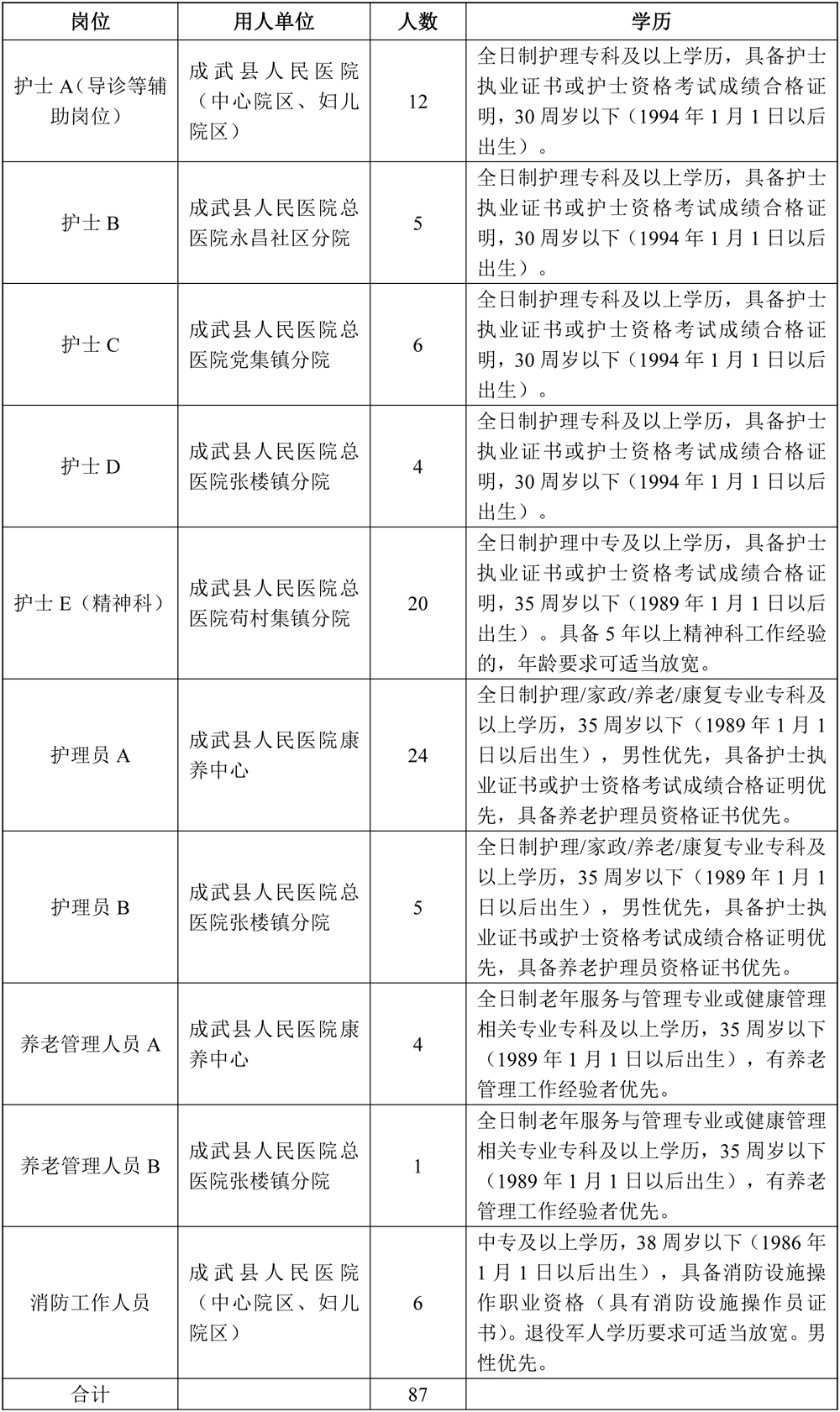 菏澤市成武縣人民醫(yī)院總醫(yī)院2023年招聘工作人員87人