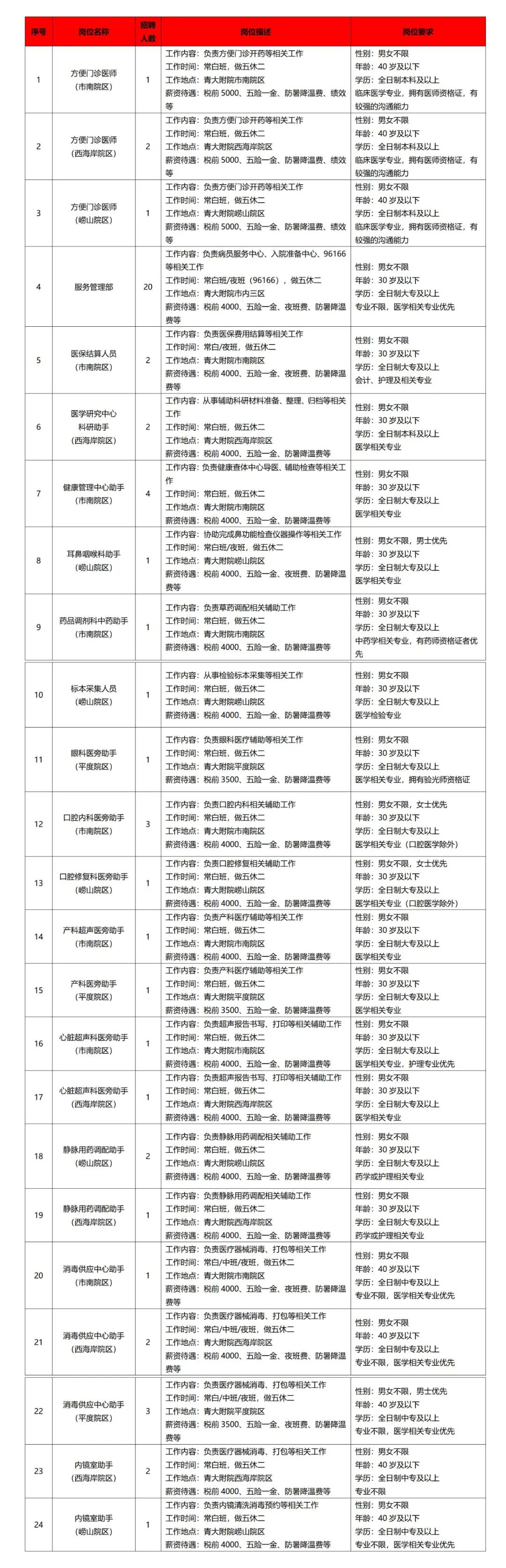附件:青島大學(xué)附屬醫(yī)院5月輔助人員招聘計(jì)劃表