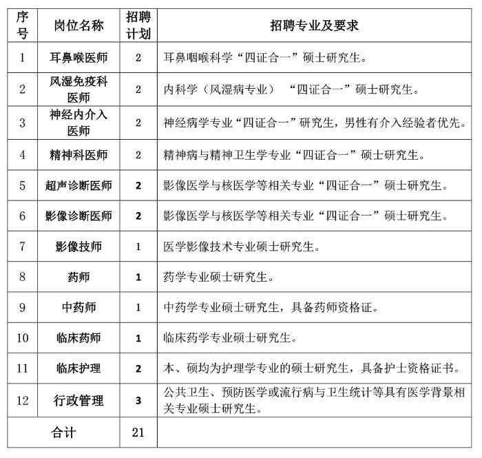 根據(jù)醫(yī)院發(fā)展及學(xué)科建設(shè)需要,現(xiàn)面向社會(huì)公開引進(jìn)急需緊缺專業(yè)人才26名,具體事項(xiàng)公告如下: