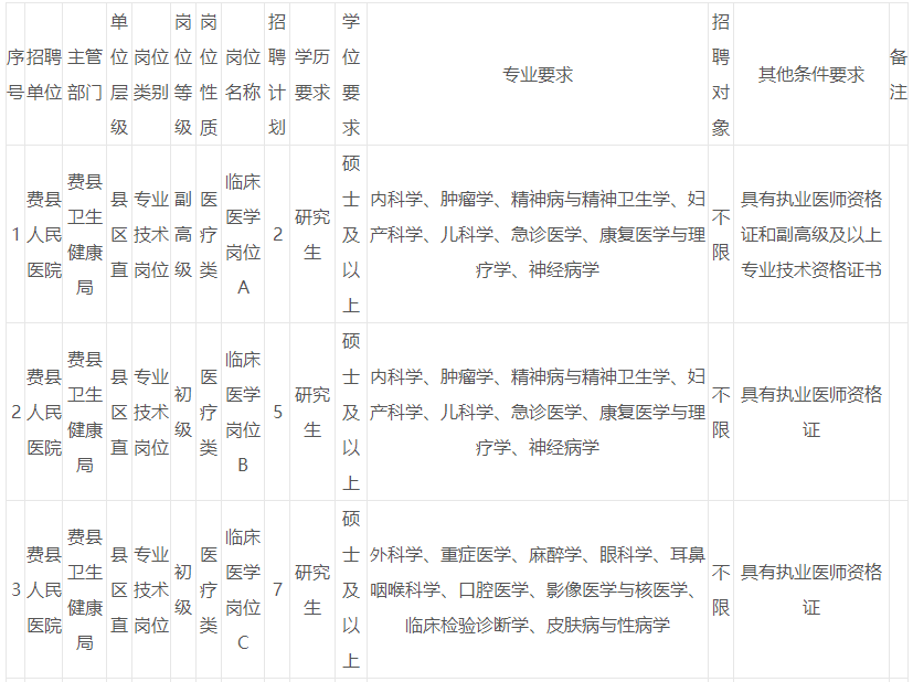 臨沂市費縣人民醫(yī)院公開招聘急需專業(yè)技術(shù)人員21人