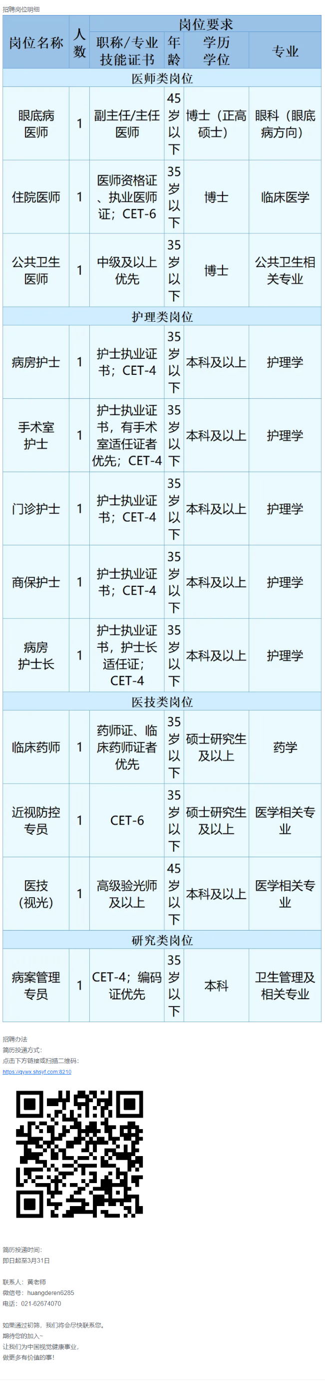 上海市眼病防治中心(上海市眼科醫(yī)院)2025年2月份招聘公告