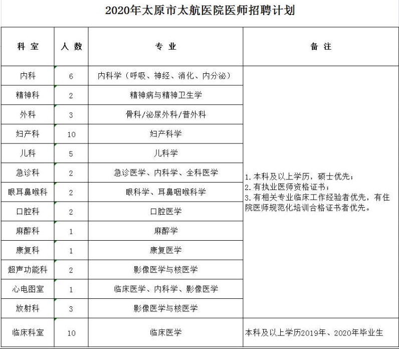 - · 2020年太原市太航醫(yī)院招聘50名醫(yī)療衛(wèi)生技術人員啦(山西?。?/a>