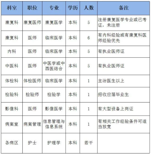 很多即將步入醫(yī)療崗位的朋友們都非常關(guān)注所在地區(qū)醫(yī)療崗位的招聘公告信息,醫(yī)學教育網(wǎng)醫(yī)療衛(wèi)生招聘欄目為了更好的服務(wù)正在找工作的醫(yī)療相關(guān)專業(yè)人員,每天為大家整理搜集新鮮的各地醫(yī)療衛(wèi)生系統(tǒng)/醫(yī)院等招聘公告通知和信息,歡迎大家查看!以下是公告通知:山西省太原和平醫(yī)院2022年招聘醫(yī)師25人及護士若干名,內(nèi)容如下: