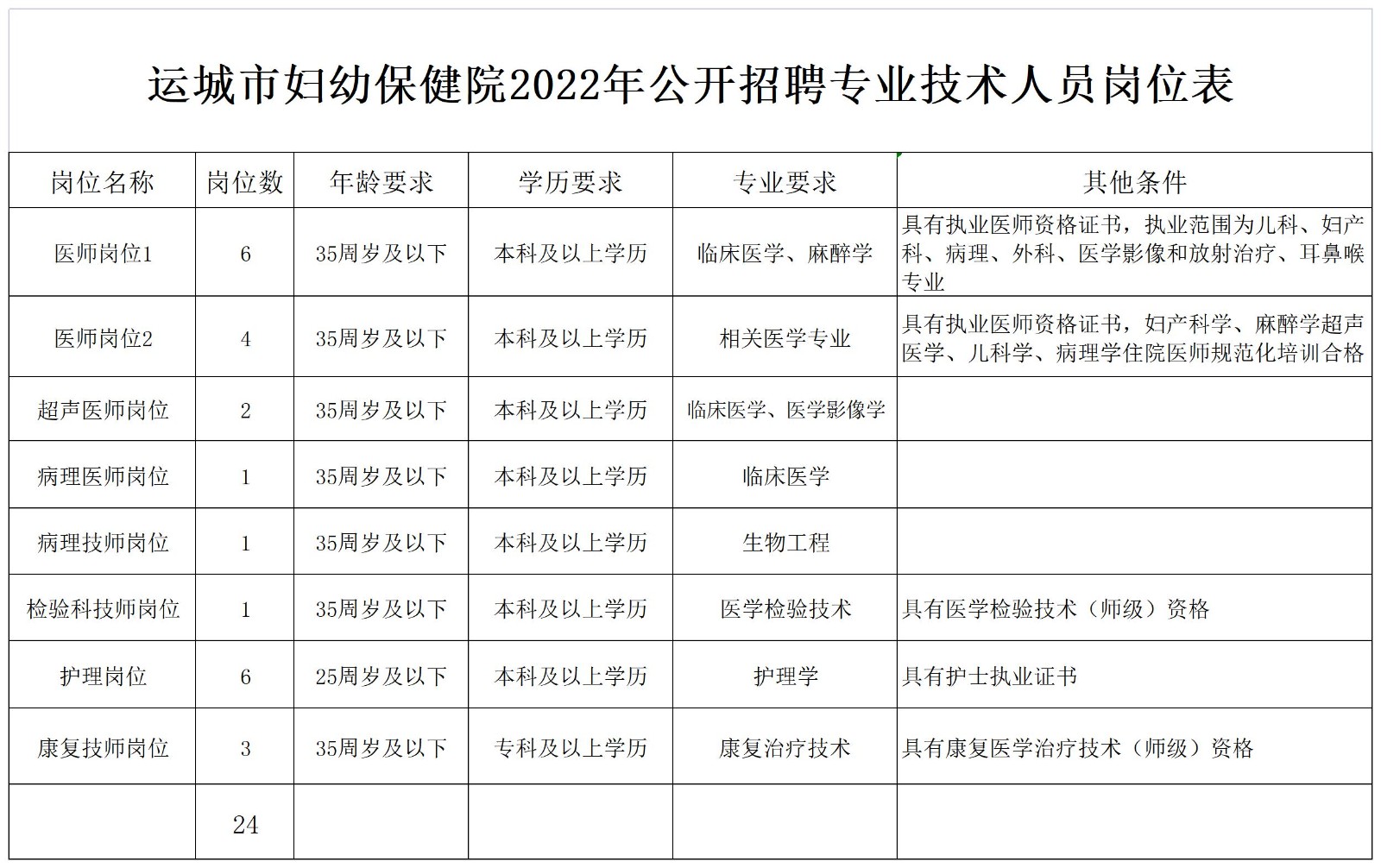山西省運(yùn)城市婦幼保健院2022年招聘編外專業(yè)技術(shù)人員24名