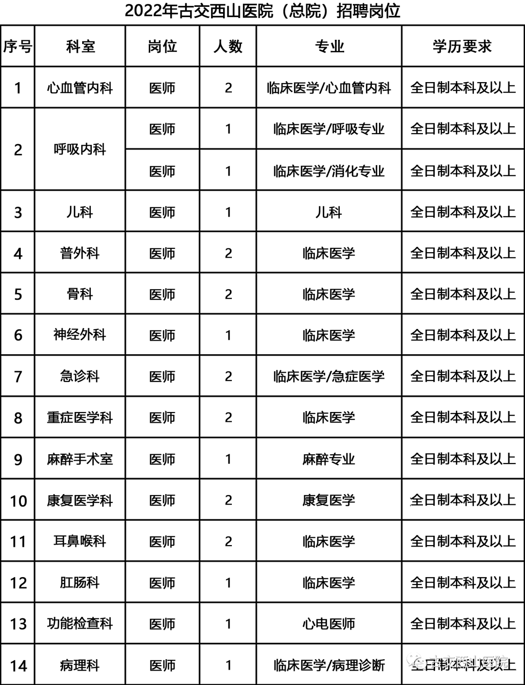 咨詢電話:古交西山醫(yī)院人力資源部,0351-5111702