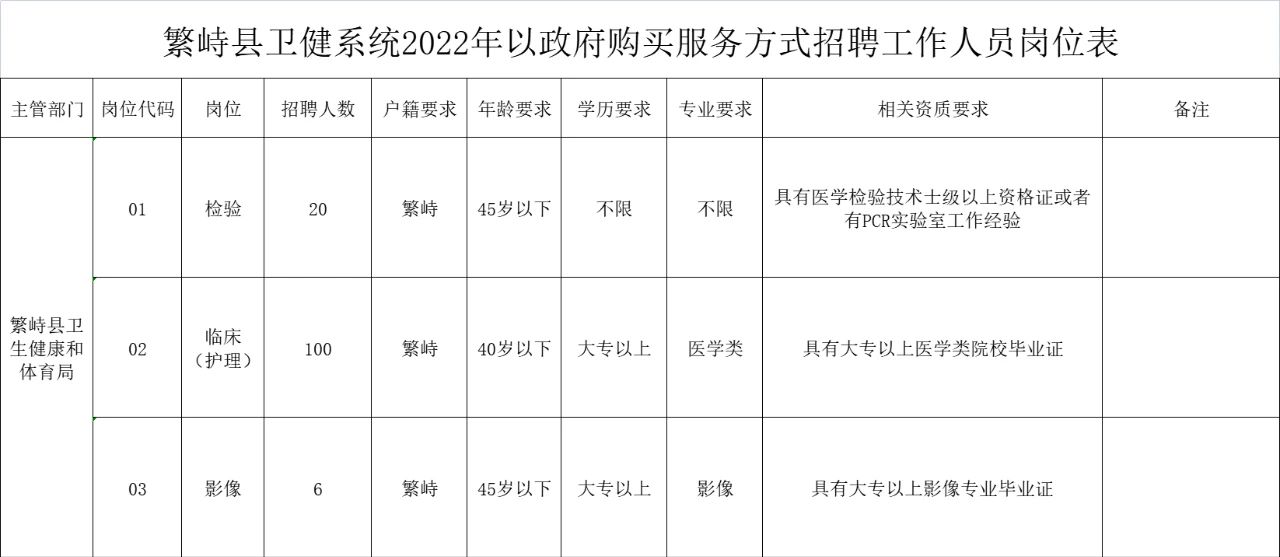 3.學(xué)歷、專業(yè)要求:見《繁峙縣衛(wèi)健系統(tǒng)2022年以政府購買服務(wù)方式招聘工作人員崗位表》。