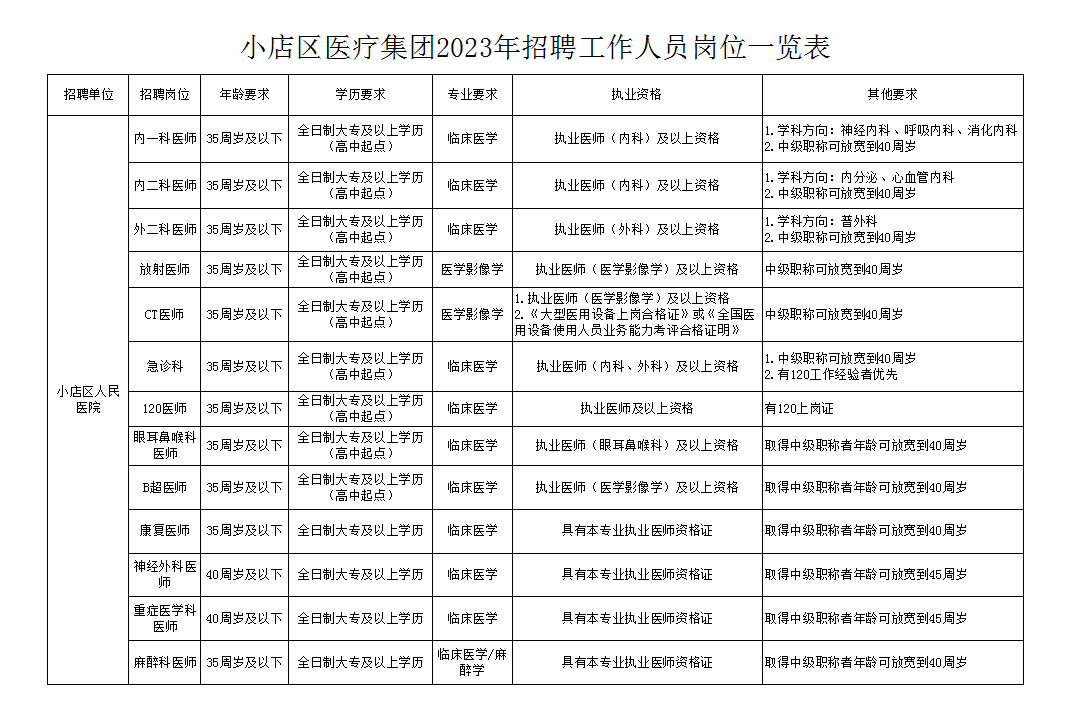 太原市小店區(qū)醫(yī)療集團2023年長期招聘工作人員13人