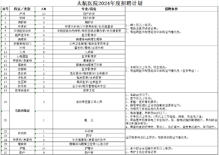 您是即將步入醫(yī)療行業(yè)的相關(guān)從業(yè)者嗎?您還在為在哪里能夠看到醫(yī)療崗位招聘信息而煩惱嗎?您還在擔(dān)心看不到所在地區(qū)全面的醫(yī)療招聘公告信息嗎?以下就是新鮮的公告通知:太原市太航醫(yī)院2024年招工作人員81人,歡迎查看。