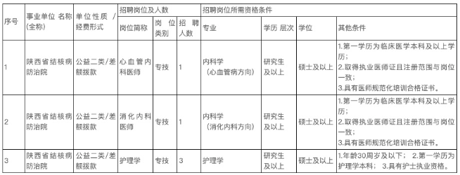 具體招聘崗位及要求見附件《2024年陜西省結(jié)核病防治院自主招聘工作人員計(jì)劃表》。