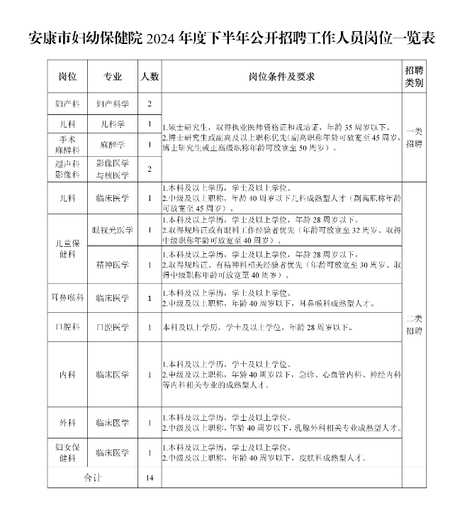 安康市婦幼保健院2024年社會公開招聘工作人員14名