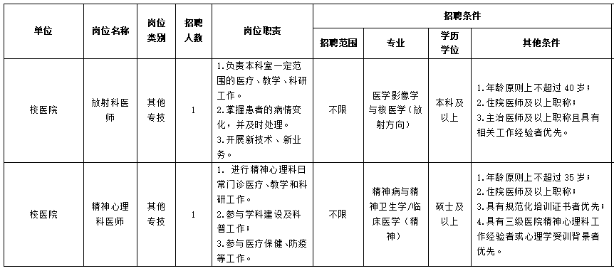 (六)年齡、學歷要求、崗位條件。詳見《西北工業(yè)大學醫(yī)院2022年春季其他專技崗位公開招聘》(上圖)。