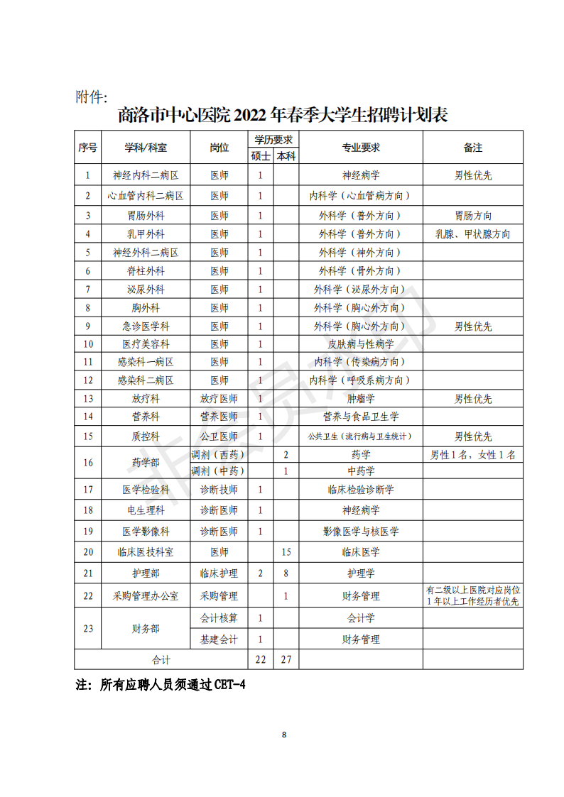 陜西省商洛市中心醫(yī)院2022年春季大學(xué)生公開招聘49人
