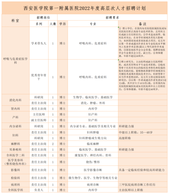 西安醫(yī)學院第一附屬醫(yī)院2022年招聘高層次人才(博士)19人