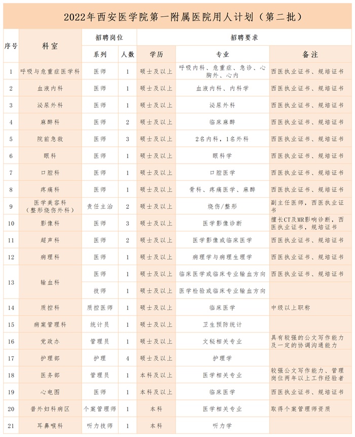 西安醫(yī)學(xué)院第一附屬醫(yī)院2022年度招聘計(jì)劃(第二批):